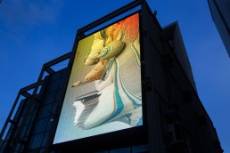 Intervenção Pública da Bienal de Arte Digital, expõe obras de arte digital em mega painel de LED no Atmosphera, espaço de tecnologia e inovação da cidade.